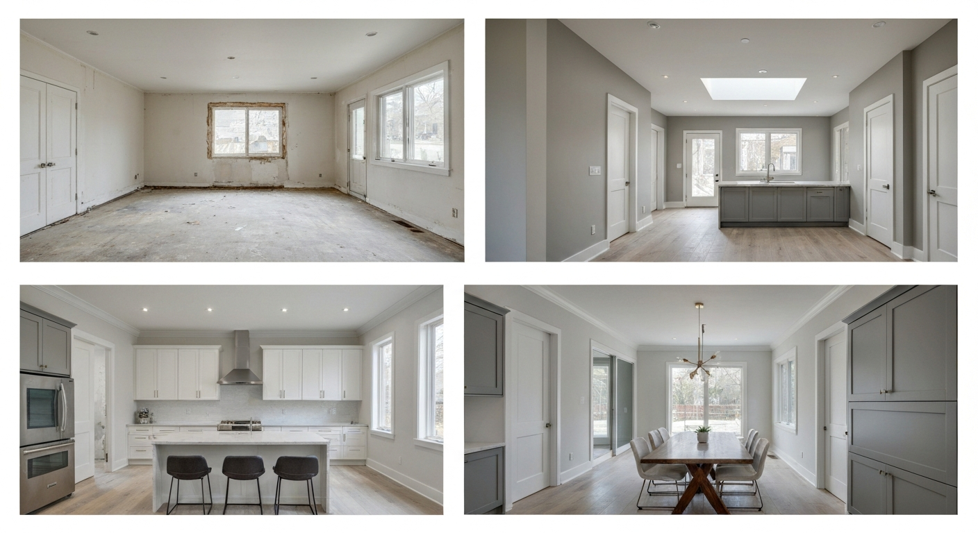Une rénovation se déroule dans un ordre logique : gros œuvre d'abord (structure, ouvertures), puis second œuvre (isolation, plomberie, électricité, cloisons), enfin finitions (revêtements, peinture, équipements). Respecter cette séquence évite les reprises et optimise le planning.